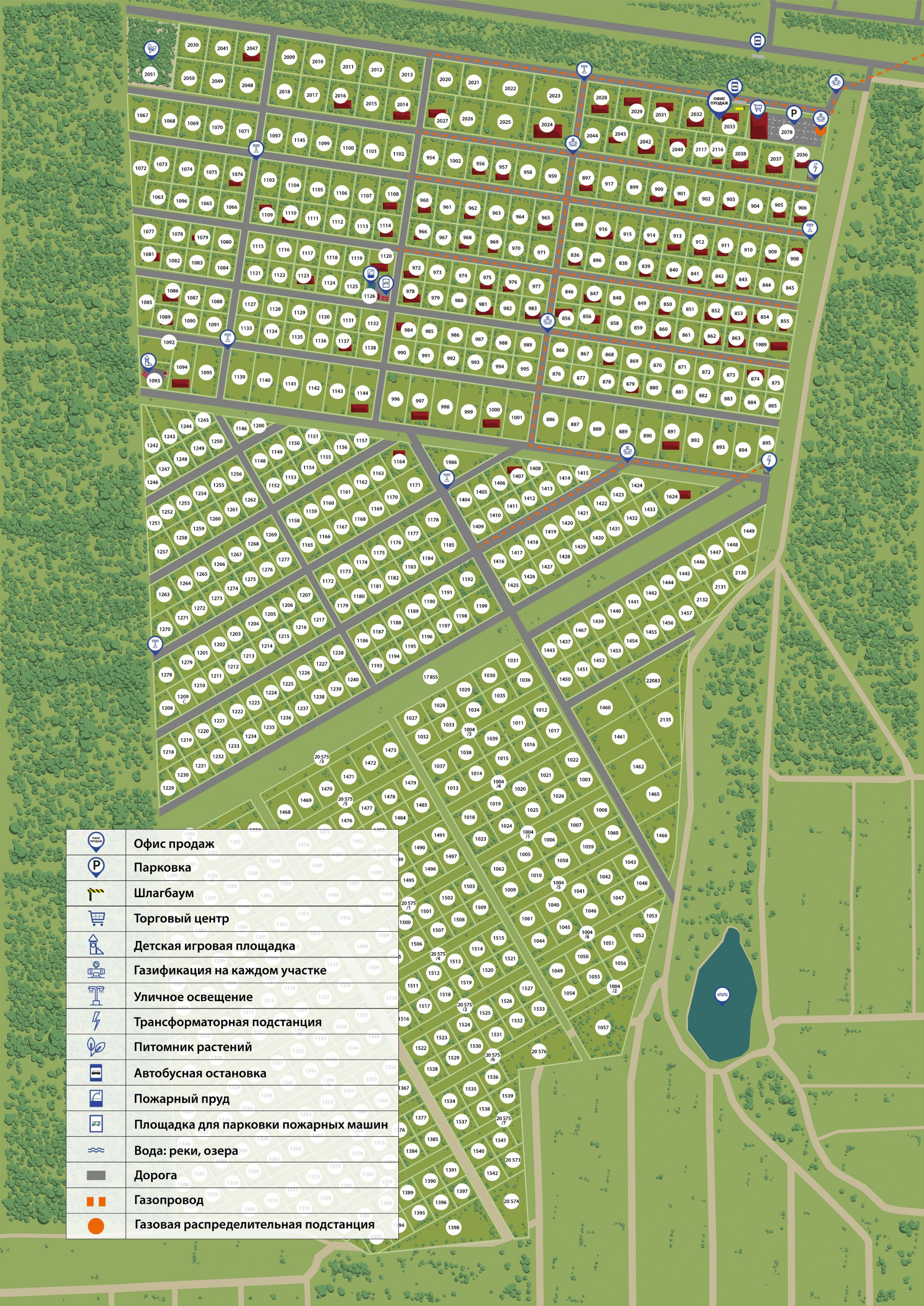 Генеральный план посёлка продуман до мелочей, предусмотрены зоны отдыха, рекреации, спортивные и детские площадки, торговые объекты.